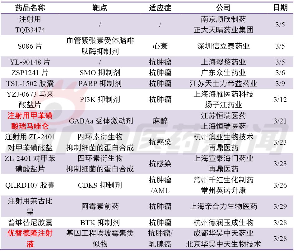 标题: 3月份国产化学新药进展:2个NDA 11个IND