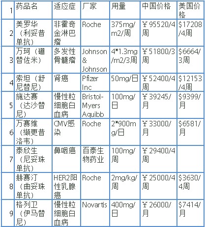 标题: 中国天价药物大盘点及中美价格对照表 [打印本页]